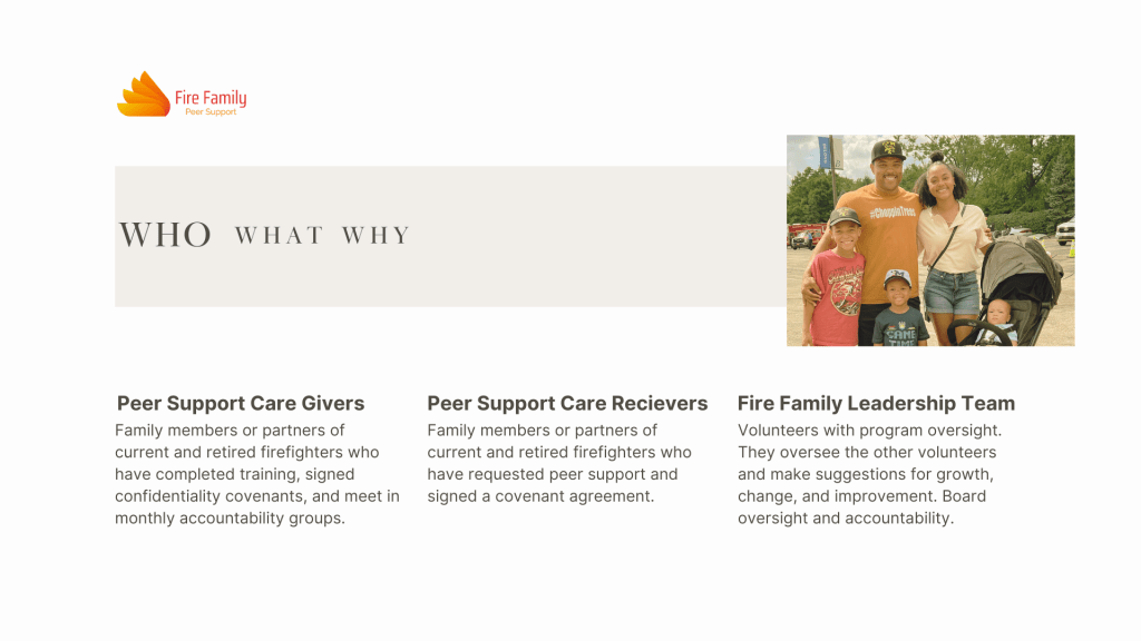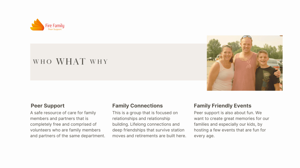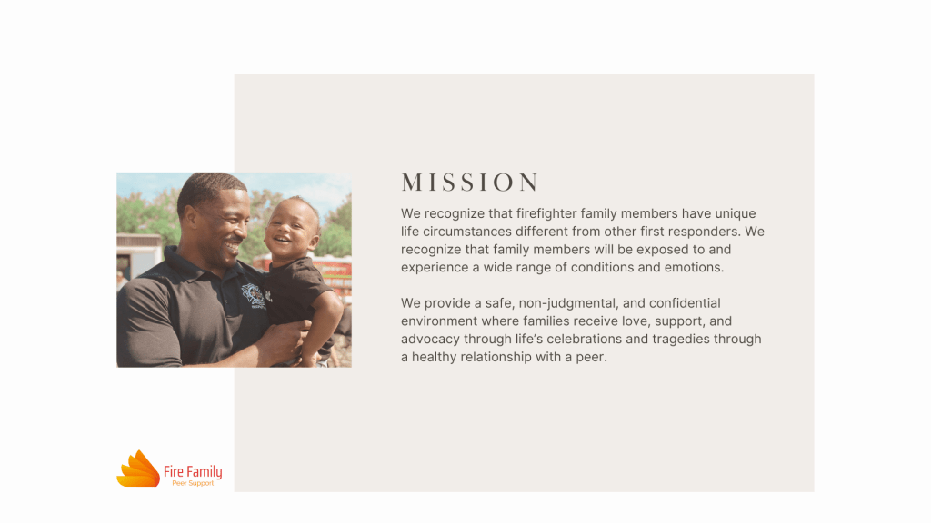 A non-profit providing support and community to family members, partners, and caregivers of firefighters.